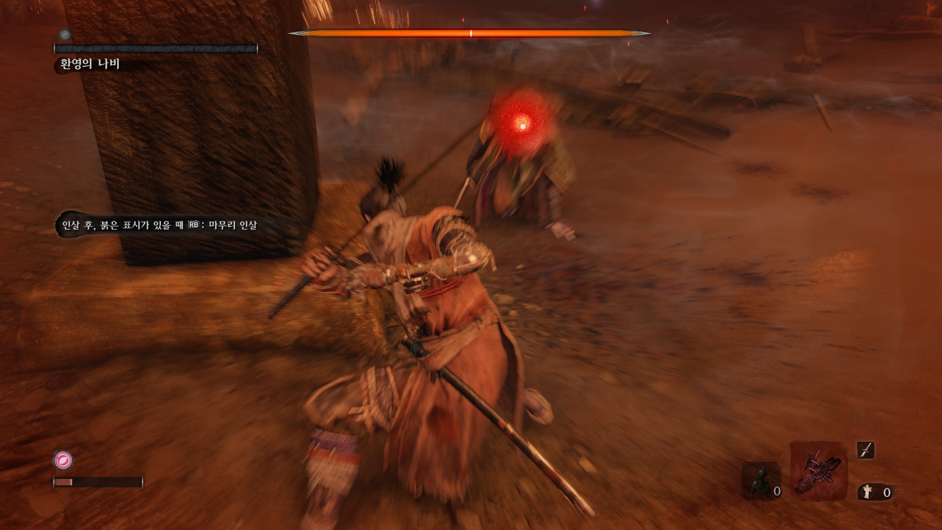 나비는 체간 회복이 너무 빨라, 회피하거나 패링하며 체력을 깎아서 클리어해야하는데 되받아베기도 사용할 줄 모를 정도다보니, 진짜 너무 힘들었습니다..