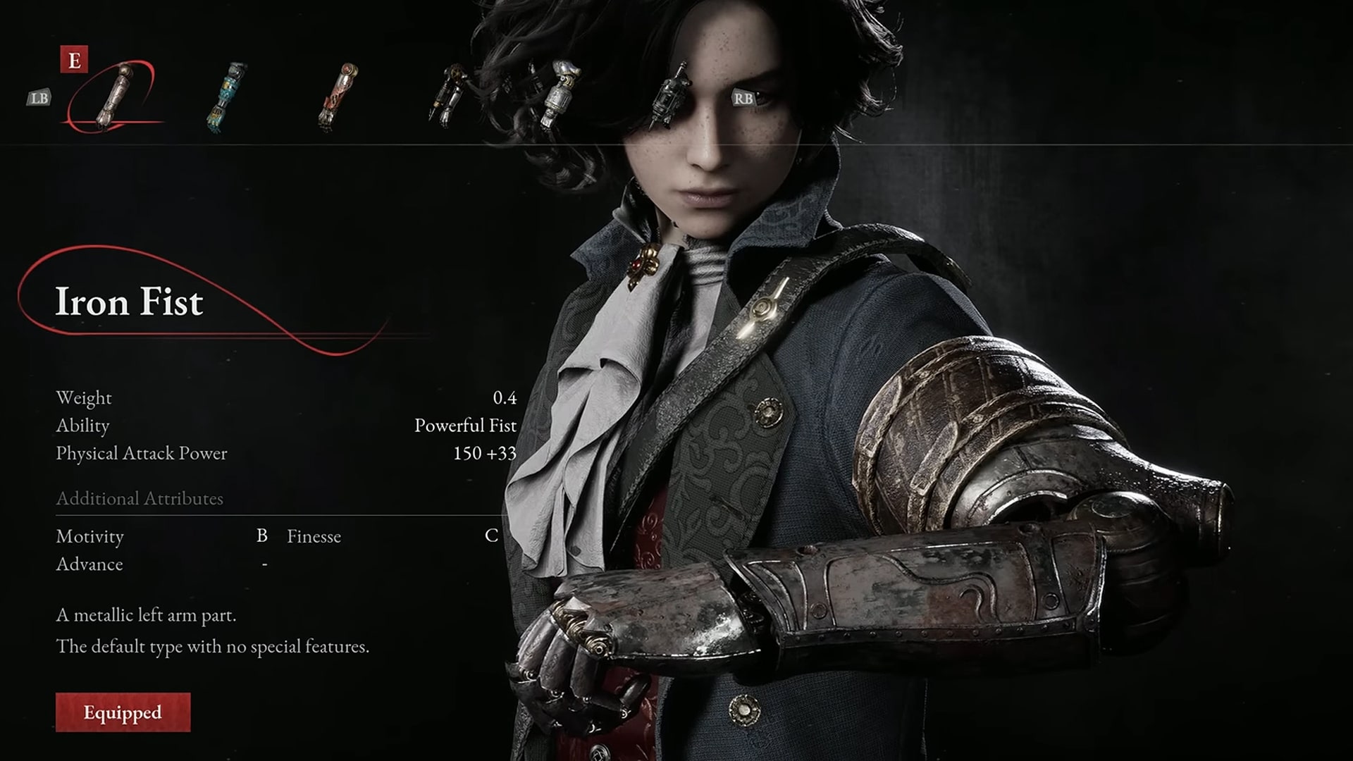 게임의 지형 지물(레벨 디자인)이나, 적의 특성(짐승 타입, 불에 약한 타입 등)과 같은 변수에 따라서 의수와 리전암을 자유자재로 변경하면서 사용하죠.