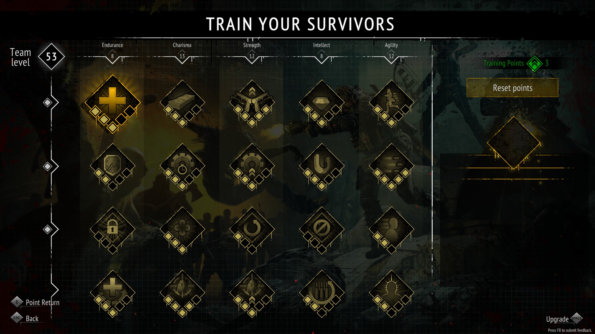 게임에서 얻은 Training Point로 캐릭터의 고유 능력을 올릴 수 있죠.
