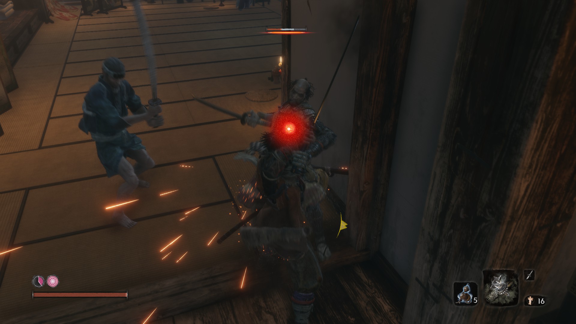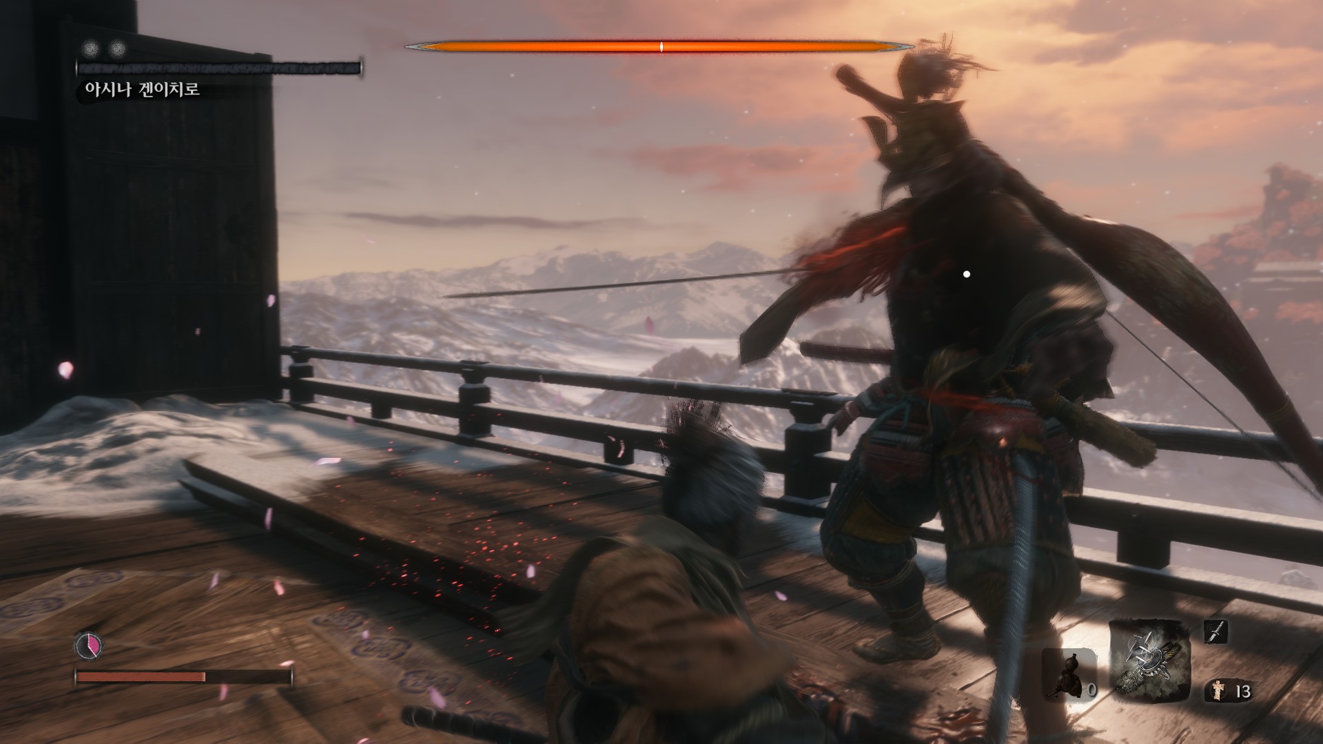 세키로는 적의 체력을 다 깎아 처치한다는 방식보다, 체간을 모두 채워 인살하는 것이 핵심 전투입니다.