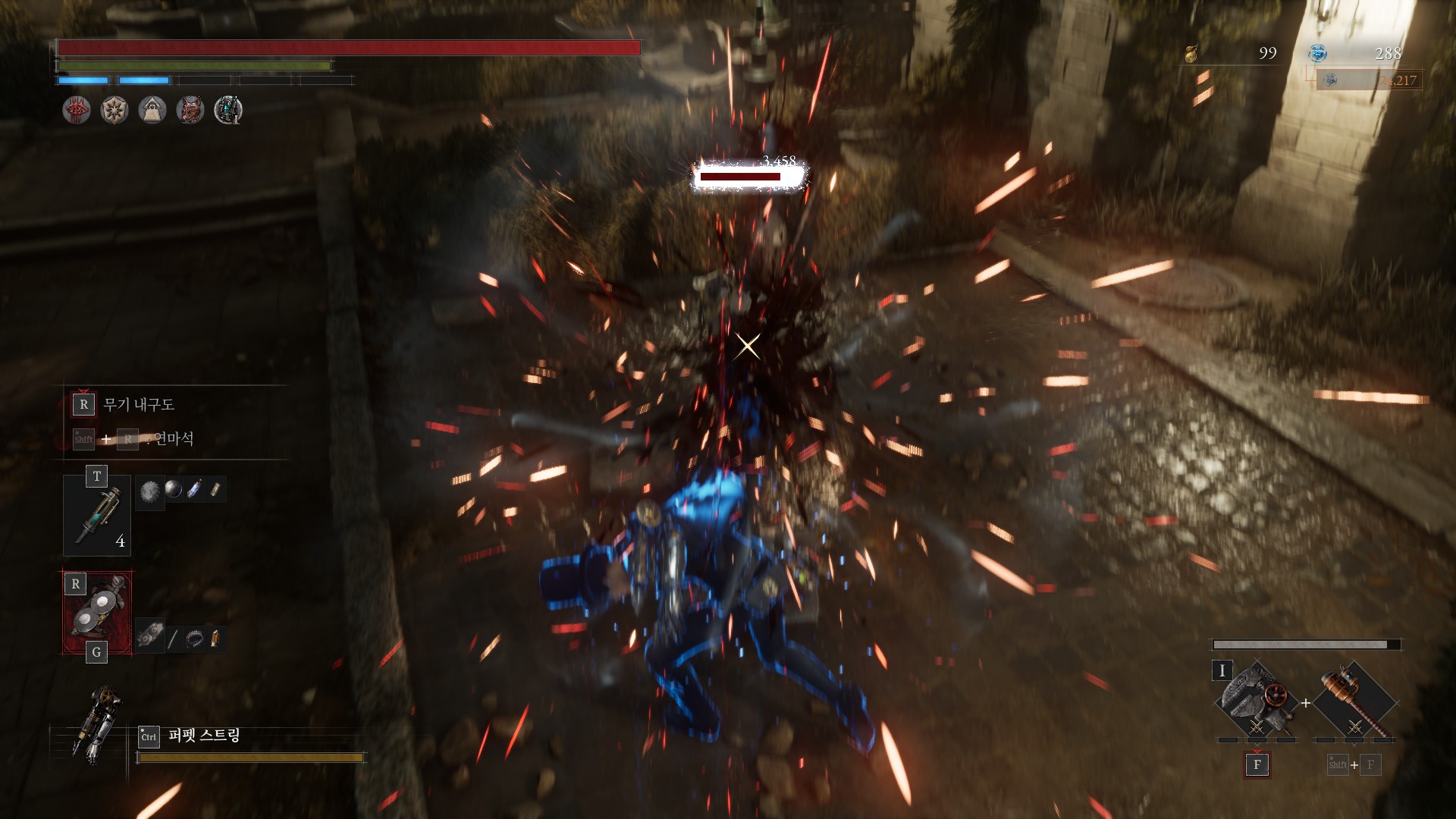 또한, 스킬이 무기의 날과 손잡이의 고유하게 붙어있기 때문에 엘든링의 전회처럼 마음대로 제거했다가 적용했다가를 할 수가 없죠.